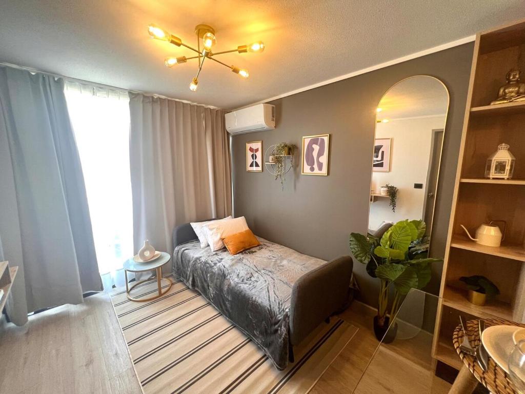 803 Atractivo apartamento a 1 cuadra del metro, 2 huespedes está ubicado en Compañía de Jesús 1703 Piso 8, apartamento 803, Santiago, Chile.