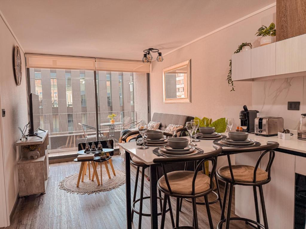 Apartamento Santiago de Chile, sofá cama, Piscina, lavandería ofrece un servicio de traslado al aeropuerto para mayor comodidad de los huéspedes.