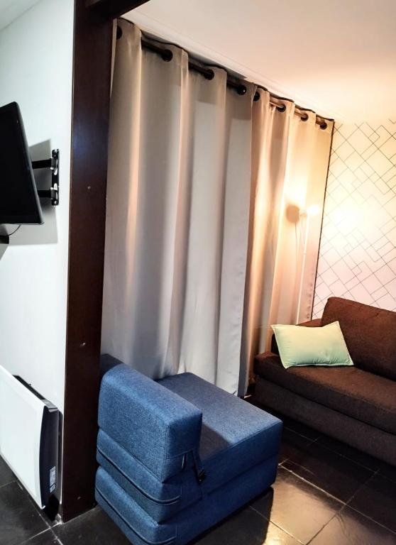 El tipo de habitación disponible en Bello Departamento Santiago Centro Estacionamiento es Apartamento de 1 dormitorio con balcón y vistas a la montaña.