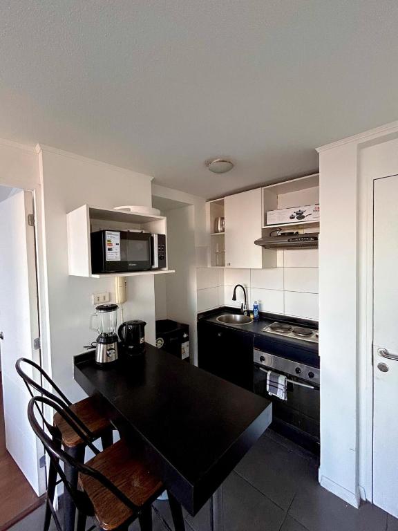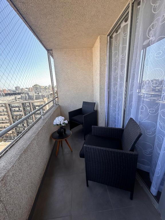 Dpto céntrico y con hermosa terraza, full equipado está ubicado en Serrano 611 1209, Santiago, Chile.