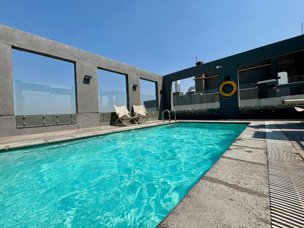 Hay una piscina al aire libre de temporada disponible para los huéspedes en Hermoso y moderno frente a Plaza Egaña.