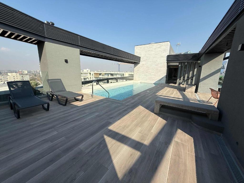 Los huéspedes pueden disfrutar de múltiples piscinas en HOM I Studio2PAX A Pasos MetroManquehue Las Condes, como.